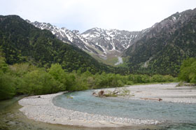 13時30分に山研に到着し、帰りの準備をしてから入浴のため西糸屋山荘に向かった。毎年入浴後に喉を潤していたラウンジは今年から使えなくなったそうで、山研に戻ってビールで乾杯。女性陣は上高地のお土産購入に専念していた。全員で予定より30分遅れでBTに向かい充実した時間を過ごせた上高地を後にした。帰りの高速は予想通り大渋滞となり、途中の大月で降りて一般道を通行したことなどから、予定の20時30分ころには立川に到着できた。受講生にとっては初の宿泊山行で得るものは多かったようで、車中ではその話題で花が咲いていた。次回「川苔山」の説明を行い、立川到着後、解散とした。