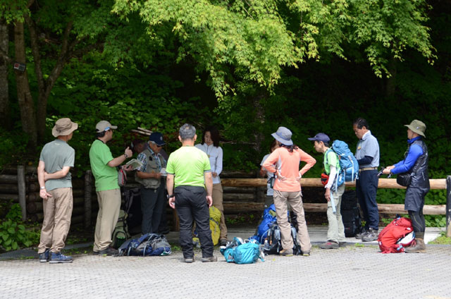 前日からの天気で当日開催が気になっていたが、回復傾向になり予定通り実施した。立川駅北口の集合場所には、初めての登山実習に受講生もスタッフも緊張気味である。時刻通りに集合でき、予定時刻前に立川をバスで出発した。途中の道路の混雑もなく、都民の森駐車場には予定より50分も早く到着した。