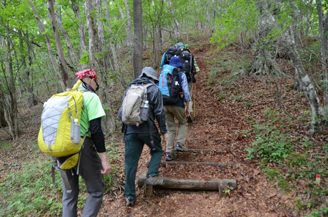 ここからが本格的な登りとなるが、ゆっくりしたペースで登って行く。快適な登山日和である。ムシカリ峠に到着し避難小屋に向かう。ここで昼食タイムである。食事をしながら談笑を楽しむ。