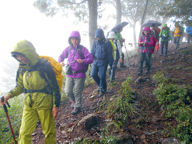 一日雨の中をしっかり歩いて、一人の落伍者もなく歩き通せたことは、今後に期待できる山行であった。