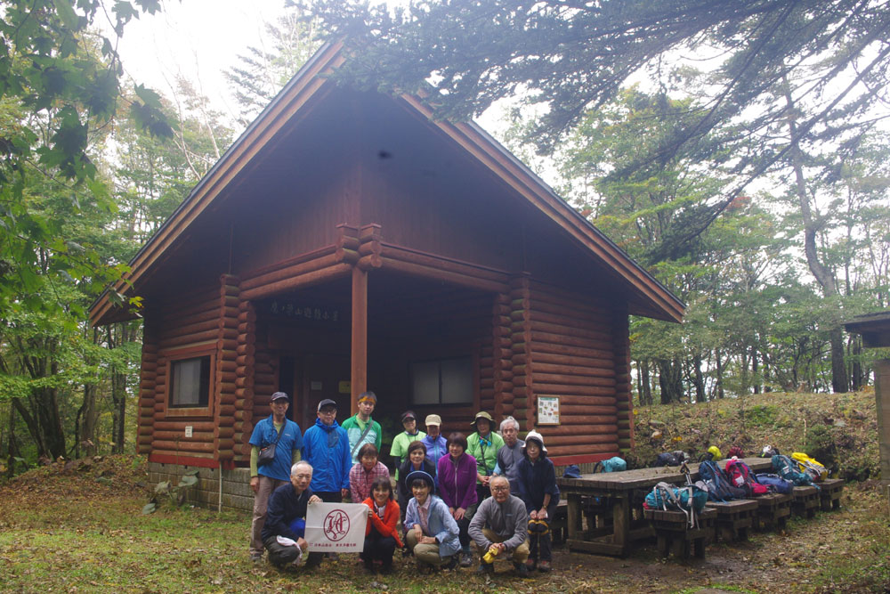 急登が続き、息も上がり気味で、脚をつる受講生も出たためか避難小屋までは予定の時間を30分程度オーバーして到着。