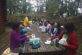 週末台風25号の接近が危ぶまれるも、進路が北寄りになり、予定通り実施することになった。ところが当日早朝に青梅線で人身事故があり、奥多摩駅発のバスに間に合うか心配される事態となった。幸いなことに、ほぼ全員が同じ電車で到着し、予定していたバスに乗ることができた。初級登山教室も最後のステップを迎え、受講生の方々も早め早めの行動ができるようになっていることの表れだと感じた。