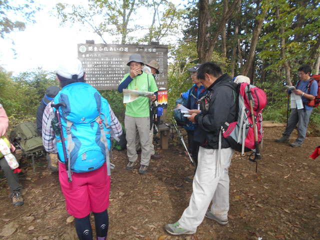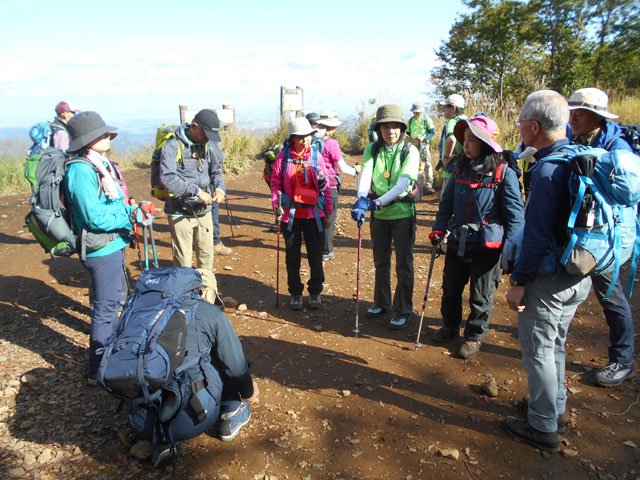 前月の第7期初級登山教室第1回実習登山は雨の中の高水三山を登ったが、今回も天気予報とにらめっこで心配したが、晴れの予報にホッとした。今回は初参加の受講生が2名おり、スタッフに注意喚起を促した。バスの増便を断られたのでスタッフの数名が立席乗車となった。上成木バス停のトイレ(1人用)を済ませ、小沢峠下の登山口前に移動する。今回のコースは登山者もほとんどいないので、トップの2班の受講生に交代で先頭を歩く経験をしてもらった。