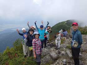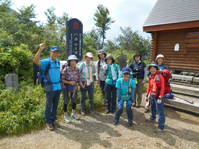 いよいよ二日目、天候は曇りながら「民宿やまなみ」からは八ツ峰の二つ地蔵岳と不動岳が望むことができ身が引き締まった。とはいえ、雨と雷は恐い!山頂駅の八海山大神に安全祈願をしてスタートした。