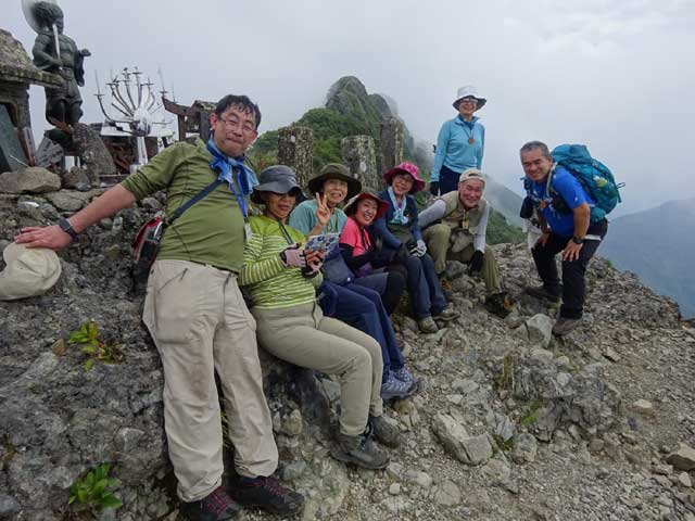 薬師岳からは開放的な稜線で千本檜小屋も展望でき、まさに雑誌に掲載されている風景が目の前にあった。ゴールの地蔵岳・不動岳の途中には神秘的な形の岩々と、山頂にはたくさんの仏像や燭台・碑が設置してあり、霊峰として深い信仰の場であることを垣間見ることができた。