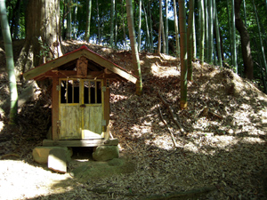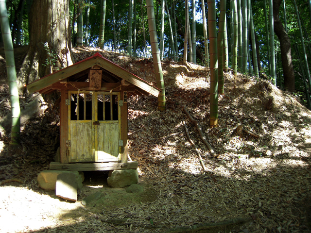モウソウチクの薮が見えた先に小広場があり、小祠やベンチなどがある、二条城跡だ。根小屋城跡ともいうらしい。誰がいつごろ建てたか詳しいことは分かっていないが、雰囲気のよい場所なのでひと息入れて行こう。竹薮の中の坂道を右手に下ると上戸吹(かみとぶき)の集落に出る。道なりに東へ行くと、西東京バスの上戸吹バス停が見えてくる。ここからはJRの秋川駅か八王子駅、または京王線八王子駅に出る。